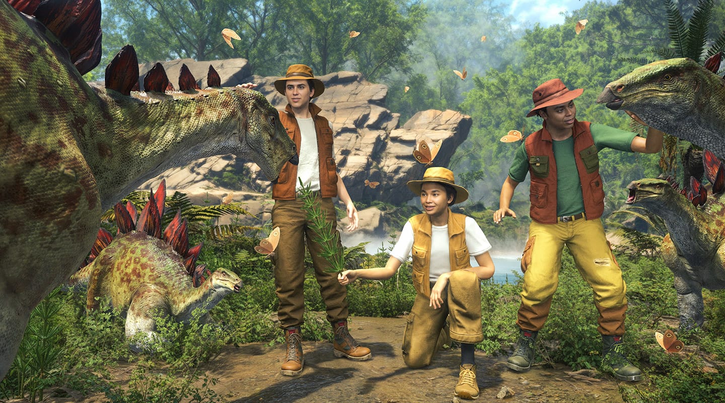 Вы переноситесь в джунгли мелового периода. Вокруг — гигантские папоротники, влажный воздух и… настоящие динозавры. Не пугайтесь: они не нападают, а просто живут своей жизнью. Вы увидите стадо травоядных диплодоков, наблюдающих за вами с высоты, и почувствуете землю под ногами при приближении тираннозавра.